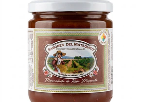 Mermelada artesanal de Rosa Mosqueta, que no solo puede disfrutarse en el pan, sino también en comidas y acompañamiento de quesos frescos. Un producto versátil con el sabor único de este fruto silvestre.